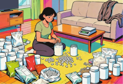 在对刘某的居住场所进行搜查时,眼前的场景令侦查人员触目惊心:这个在朋友圈被包装成高端定制的爆款“减肥套餐”,其生产地竟是刘某家中的客厅。客厅内,无任何标签的“白色粉末”(西布曲明药粉)、散装的减肥茶包、豆浆粉、奇亚籽、木糖醇、荷叶粉、菊粉等原料与大量空白罐子、包装袋、胶囊壳杂乱地堆放在一起,一台热压封口机竟是唯一的“生产设备”。现场没有任何食品生产资质文件、无菌车间、检测设备,甚至没有基本的卫生防护措施,是一个“三无”家庭作坊。