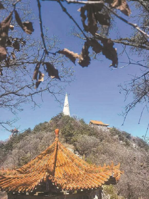 魏晋南北朝时期,社会动荡引发大规模的人口迁徙与文化交融,道教和佛教相继传入介休,天峻山便因这份清幽与灵秀,成了修行者的世外桃源。如今身临其境,那份清净自然,历经千年仍未消散,足以让人忘却世间的烦恼。想起中学时喜爱的一篇课文《我的空中楼阁》,对文中“小屋玲珑地立于山脊一个柔和的角度上”的描述,至今仍记忆犹新。若是此刻,青黛色的山峦间能点缀一间白墙红瓦的小屋,如宝石般镶嵌其中,那又会成为谁的精神栖居地?眼前的山没有小屋,却有云盖寺与文峰塔相伴,何尝不是另一种绝妙?灰白的尖塔刺破苍穹,金黄的寺顶辉映日月,不正是这山间最美的点缀,不也是人们心中最深的惦念?