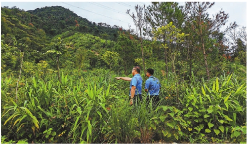 今年10月,英德市检察院检察官实地核查温某补植复绿情况。