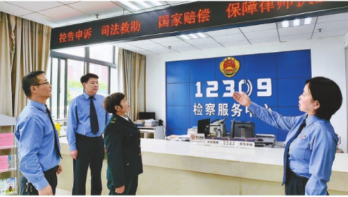 全国人大代表赵明翠(左三)到陕西省安康市汉滨区检察院调研工作。