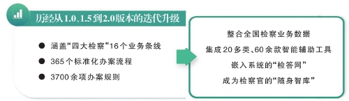 该系统也成为提升检察办案质效的重要引擎——深度整合全国检察业务数据,通过智能分析技术为类案监督和社会治理注入新动能;集成20多类、60余款智能辅助工具,构建起全方位的数字化办案支持体系;嵌入系统的“检答网”成为检察官的“随身智库”,有效提升专业知识获取和疑难问题解决效率。