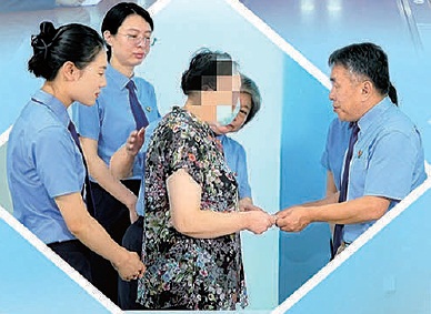 吉林省长春市宽城区检察院“桔子姐姐”团队将爱心捐款交给被救助人。