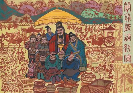 简阳农民画《简雍戏谏刘备》 创作者:张树敏