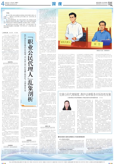 ◆公民代理制度被一些人异化为牟利工具,呈现职业化特点。即使有些“职业公民代理人”打赢了官司,也存在因不规范执业行为甚至违法行为带来的法律风险,给当事人带来二次伤害。