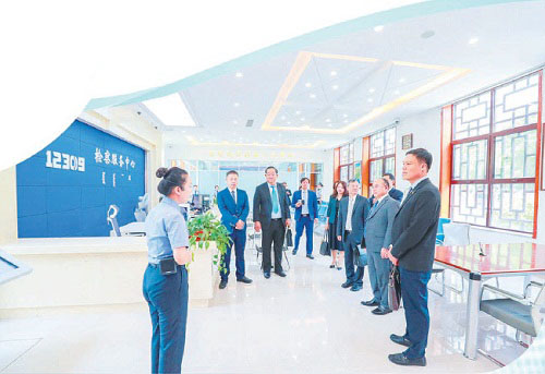 内蒙古自治区伊金霍洛旗检察院检察官走访外贸企业了解法治需求。