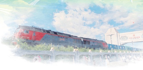 在中俄蒙三国交界的满洲里口岸,中欧班列驶过国门。