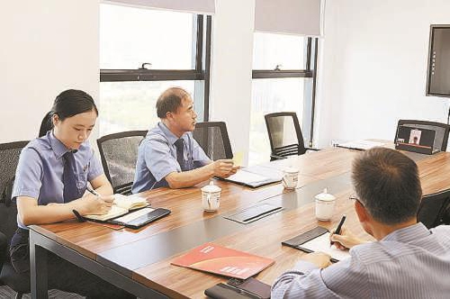 今年9月,浙江省慈溪市检察院检察官与慈溪市人大代表范红枫(右)视频连线被救助人小杨。