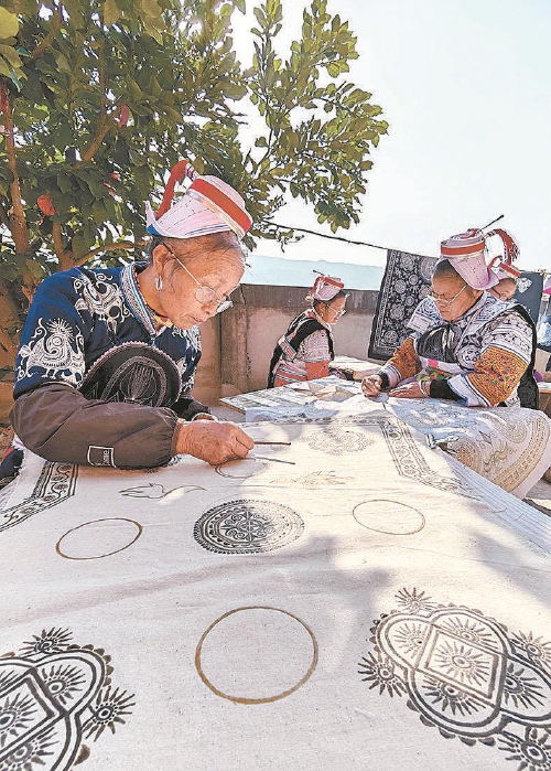 在黄平县望坝村罗文珍的蜡染手工坊,一幅幅精美的蜡染作品在蓝靛的浸染下逐渐成形。在从江县岜沙村滚努拉的手工坊内,温热的枫香油散发着清香,竹条在白色布料上勾勒出细腻的花纹。苗族服饰被誉为“穿在身上的史书”,制作该服饰的苗族枫香印染和蜡染都是国家级非物质文化遗产。“我们现在有很多国外的订单,但我们对知识产权保护完全不懂,检察机关给我们做了很多这方面的宣传,也讲了很多案例,我今年注册了自己的商标。”11月24日,60岁的蜡染传承人罗文珍自豪地对记者说。