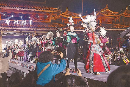 图④:群众在“村T”舞台展示黔东南州少数民族服饰。