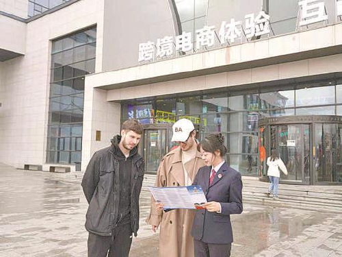 今年四月,吉林省珲春市检察院干警走进珲春市东北亚跨境电商产业园,开展“深化涉外法治,护航跨境营商”宣传活动,向从业者与外籍务工人员普法并发放宣传手册。 刘宏悦摄