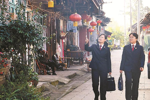 今年11月5日,四川省峨眉山市检察院“益·峨眉”文旅检察团队前往罗目古镇开展现场回访。 罗极/摄