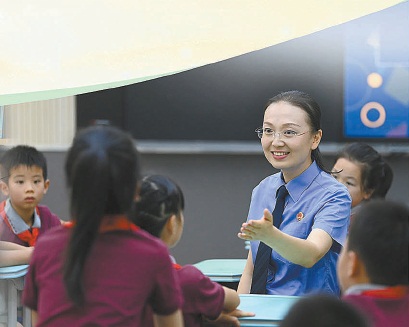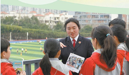 图⑥:2025年9月1日,龚珊在重庆市渝北巴蜀小学给孩子们做普法宣传。