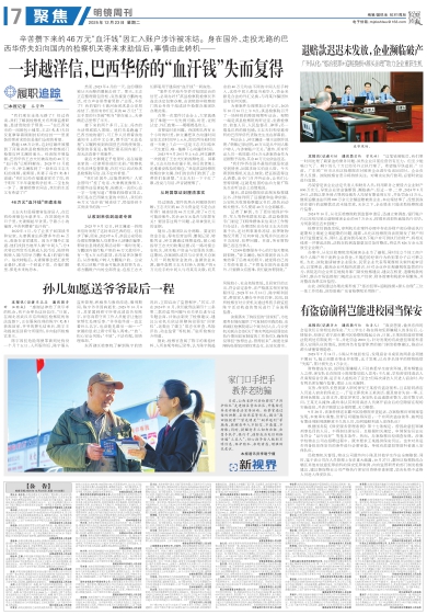 本报讯(记者周晶晶 通讯员鲁昕 汪继成)“感谢法律给了我尽孝的机会,我不会辜负这份信任。”日前,在湖北省武汉市东西湖区检察院的依法监督下,正在服拘役刑的陈宇(化名)获准回家。爷爷的葬礼结束后,陈宇主动提前返回看守所服刑,并向驻所检察官表示。
