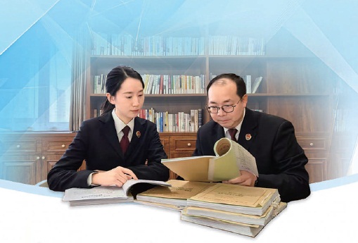 检察官审查案卷并讨论办案难点。