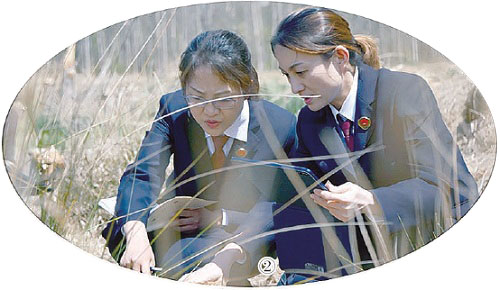 图②:2025年11月14日,昆明市盘龙区检察院检察官利用检测设备查看涉案土地土壤、植被恢复情况。