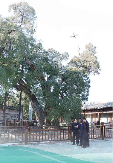 2026年1月4日,清晨的渭北高原,寒意浸透了土层。“嗡嗡——”陕西省白水县史官镇的古柏群还笼罩在薄雾中,一阵嗡鸣刺破了山林的静谧。一架六旋翼无人机从千年古柏旁缓缓升空,螺旋桨搅动着清冽的空气,将树身的沧桑纹路、根部的土壤裂隙清晰地投射在地面的操作屏上。