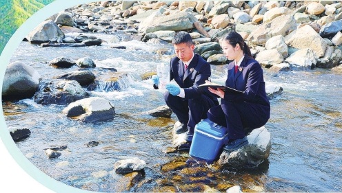 收到陕西省生态环境检察指挥中心平台推送的生活污水直排平利县某镇河道线索后,平利县检察院检察官携带便捷检测设备,前往某镇河道采集水样。