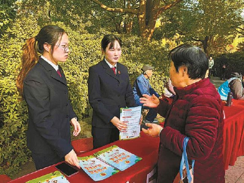 安徽省巢湖市检察院检察干警在洗耳池公园开展法治宣传活动,引导群众牢固树立依法维权意识。
