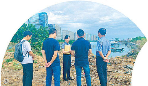 图③:福建省厦门市检察院检察官勘验违法倾倒海洋垃圾现场。