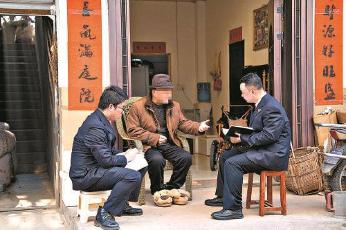 2026年1月,四川省中江县检察院检察官梁小成(右)与同事回访案件当事人杨大爷。