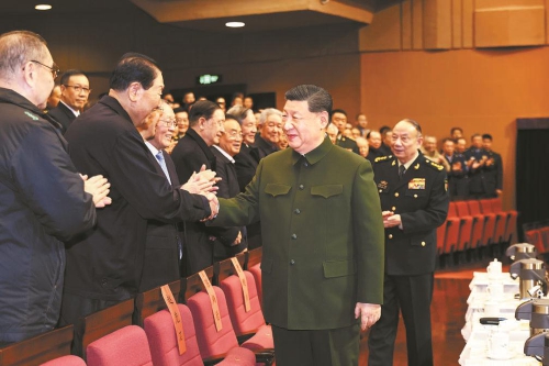 下午4时许,习近平来到老同志中间,全场响起热烈掌声。习近平同大家亲切交流、互致问候,关切询问他们的身体和生活情况,共同回顾过去一年党、国家和军队事业走过的不平凡历程、取得的重大成就。老同志们一致表示,要更加紧密地团结在以习近平同志为核心的党中央周围,坚持以习近平新时代中国特色社会主义思想为指导,深入贯彻习近平强军思想,深刻领悟“两个确立”的决定性意义,坚决做到“两个维护”,贯彻军委主席负责制,弘扬光荣传统、永葆政治本色,坚定信念、勇毅前行,为如期实现建军一百年奋斗目标、高质量推进国防和军队现代化作贡献。