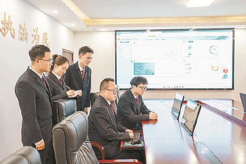 今年一月,达州市检察机关大数据应用推广专班成员们查看燃气安全大数据法律监督模型运用情况。