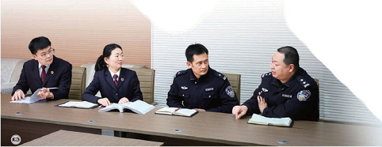 图③:检察官与办案民警就“立功”问题展开讨论。