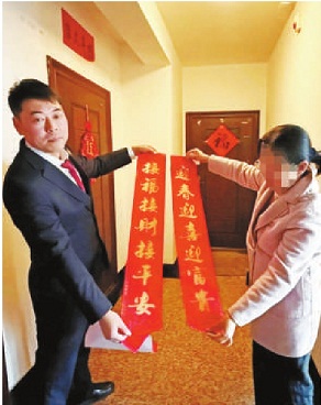 春节将至,周昱竹(右)与检察官一起贴春联。