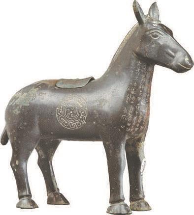 更为珍贵的是,在马驹身体颈胸之处有铭文9行94字,盖内有铭文3行11字。铭文大意是:周王某年甲申日,周王辟雍大池之岸初行执驹之礼。周王亲赐作器者盠“勇雷骓子”与“勇雷骆子”两匹驹。盠拜赐后,称颂周王不忘旧宗子弟,使自己享受到如此大的荣誉,称赞周先王奠定了伟大基业,永保万代宗族。盠为颂扬周王之美德,便铸造这件驹尊告先祖并以为纪念。