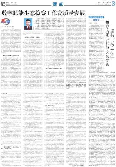 在数字中国建设的大背景下,数字技术必然成为强化检察监督、推动国家治理体系和治理能力现代化的重要引擎和关键变量。数字赋能法律监督既是着力破解监督“被动性、碎片化、浅层次”问题,实现检察工作创新发展的重要突破口,更是回应新发展阶段党和人民对检察履职新的更高期待、以检察工作高质量发展更好服务经济社会高质量发展的必然选择。检察机关深入践行习近平法治思想、习近平生态文明思想,自觉把深入推进数字检察战略与推动“四大检察”全面协调充分发展有机结合起来,实现数字赋能生态检察工作高质量发展的“乘法效应”。