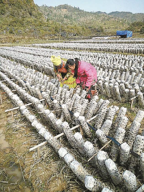 2017年,最高检帮助富宁县新华镇格当村村民种植黑木耳。