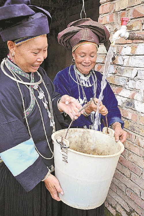 最高检协调资金9953.86万元,帮助建设西畴县南昌水库。2020年10月,水库建成,解决了5000亩农田灌溉和1.7万人的饮水问题。图为群众用上干净卫生的自来水。
