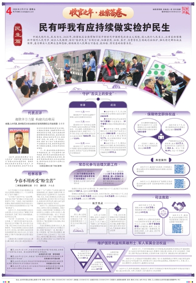中国式现代化,民生为大。2025年,检察机关全面贯彻习近平新时代中国特色社会主义思想,深入践行人民至上,注重在检察履职中倾听人民呼声、回应人民期待,深化“检护民生”专项行动,加强食药、社保、医疗、消费等民生领域司法保护,强化特定群体权益保障,着力解决人民群众急难愁盼,持续做实人民群众可感受、能体验、得实惠的检察为民。