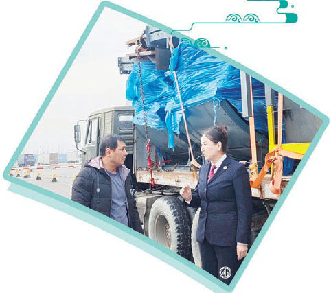 图④:2025年11月14日,新疆维吾尔自治区霍尔果斯市检察院检察官沙比拉·买吉提在霍尔果斯口岸国门前向外籍司机介绍道路交通安全法。 本报通讯员刘子敬摄