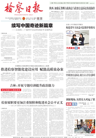 公平正义,民之所盼,政之所向。让公平正义可感可触可见,离不开法律监督职责的精准履行。十四届全国人大四次会议通过的“十五五”规划纲要明确提出,“强化检察监督,加强公益诉讼”。大会关于最高检工作报告的决议首次写入“强化检察监督,加强公益诉讼,履行好国家法律监督机关职责”,连续第三年写入“高质效办好每一个案件”。今年全国两会期间,代表委员也对强化检察监督提出许多宝贵意见。这些都充分体现党中央对检察机关法律监督工作的高度重视和更高要求,充分体现人民群众对检察机关维护公平正义的更高期待。各级检察机关要深入学习贯彻习近平总书记重要讲话和全国两会精神,认真贯彻落实人大决议要求,全力履行好国家法律监督机关职责,坚持依法监督、敢于监督、善于监督,严格公正司法,更加注重保障和促进社会公平正义,努力让人民群众在每一个司法案件中感受到公平正义,更好担负起维护执法司法公正、保障国家法律统一正确实施的使命任务。