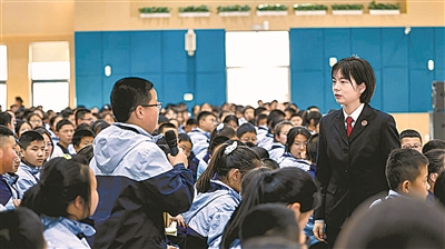 近日,陕西省泾阳县检察院未成年人检察干警走进辖区某学校,开展“防范校园欺凌”专题教育活动。未检干警结合司法实践中的真实案例,向学生们讲解了校园欺凌的行为性质、法律后果及预防应对措施,并通过互动问答引导学生们增强法治观念,提升自我保护能力。