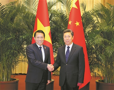 本报北京4月15日电(全媒体记者杨波) 中共中央政治局委员、中央政法委书记陈文清14日在京会见越共中央政治局委员、公安部部长梁三光。 陈文清指出,习近平总书记和苏林总书记为深化构建具有战略意义的中越命运共同体擘画了宏伟蓝图。希望双方以两党两国最高领导人重要共识为指引,加强维护政治安全、打击网赌电诈、保护海外利益等重点领域执法司法交流合作,为两国国家安全和社会稳定作出更大贡献。 梁三光表示,愿深化与中方密切交流,推动越中执法安全交流合作迈上新台阶。 中央政法委副秘书长杨春雷、王贻星,公安部副部长王志忠,司法部副部长武增参加会见。
