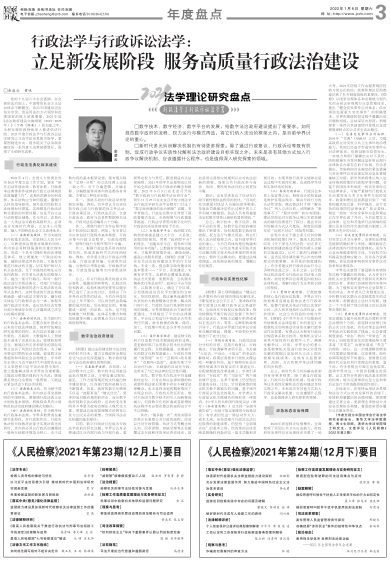 《人民检察》2021年第23期(12月上)要目