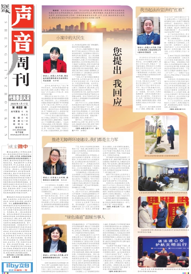 编者按 民生是最大的政治。当人大代表、政协委员们将一件件关系群众切身利益的建议和诉求带给检察机关,检察机关是如何反应、解决问题的,代表委员们又是如何参与其中,亲身感受检察工作的?本期封面邀请来自天津、辽宁、江苏、湖北的四名人大代表,请他们讲述2021年自己和检察机关有关民生的暖心故事。
