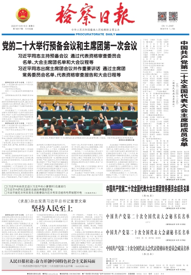 中国共产党第二十次全国代表大会主席团常务委员会成员名单