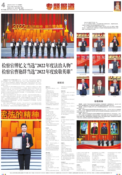 检察官傅忆文当选“2022年度法治人物” 检察官曹艳群当选“2022年度致敬英雄”