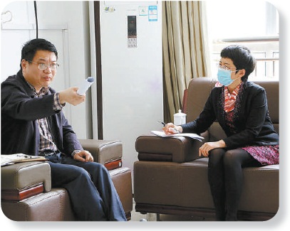 在山东,张淑琴代表(右)接待选民,听取意见,完善关于在中小学配齐专职校医的建议。