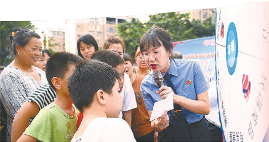 2022年7月,重庆市綦江区检察院“莎姐”检察官走进社区开展普法宣传。 本报通讯员刘乔月摄