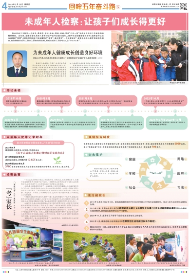 集全社会之力托举一个孩子,是家庭、学校、社会、网络、政府、司法“六位一体”未成年人保护工作新格局的鲜明特征。五年来,全国检察机关深入落实习近平总书记就未成年人保护作出的重要指示精神,始终坚持以依法监督的“我管”,促相关职能部门依法履职的“都管”,通过落实“一号检察建议”、侵害未成年人案件强制报告制度、密切接触未成年人行业入职查询等机制,形成未成年人保护合力,让“1+5>6=实”。