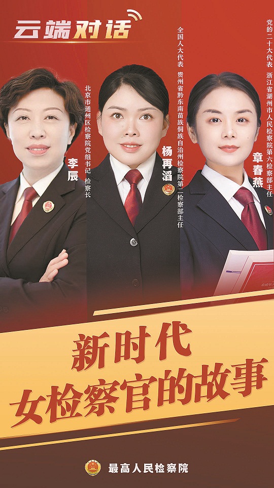近日,全国人大代表、贵州省黔东南苗族侗族自治州检察院第二检察部主任杨再滔,北京市通州区检察院党组书记、检察长李辰,党的二十大代表、浙江省湖州市检察院第六检察部主任章春燕三位女检察官接受本报记者专访。