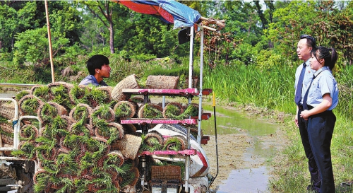 为贯彻落实“公益诉讼江西行”专项行动,江西省靖安县检察院开展耕地保护跟进监督“回头看”活动。图为该院检察官近日前往高湖村陈家洲调查耕地整改落实情况,遇到正在劳作的农户,现场进行情况了解,听取农户意见建议。“原来种的花草都移植了,基本农田栽上禾苗,心里踏实多了。”受访的农户说道。 本报通讯员刘健 李先华摄