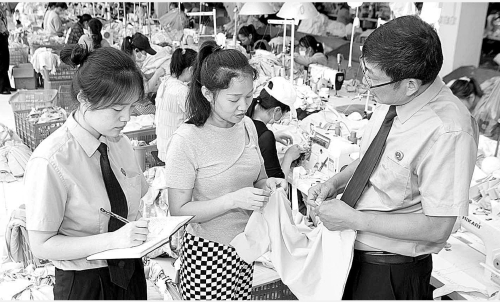 5月25日,江西省瑞昌市检察院检察官来到某服饰有限公司,上门“问诊”法律问题,提供“订制”服务。检察官实地参观了企业生产车间,详细了解企业在生产经营、政策支持和法律服务等方面的需求,并就企业关心的问题提供了法律咨询。近年来,该院依法起诉破坏市场经济秩序类犯罪案件9件18人,努力维护公平竞争的市场环境。今年以来,该院组织开展了“百名检察官进千企”活动,截至目前共走访企业75家。 本报记者闫昭 通讯员何祖善 姚卫东摄