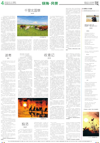 清晨,我烧好大锅又烧小锅,小锅里是艾叶煮鸡蛋,这是豫南平原上沿袭的习俗。端午节就要到了,但收麦的日子太忙了,母亲是没有时间包粽子的。艾叶是一种香草,也算是对以香草自喻的诗人屈原的一种纪念吧。想想昨晚遇见的红花蛇,不知是否也和端午节有关啊。端午阳盛,万物阴虚,难道那条蛇也烦躁不安,要出来溜达溜达,享受一下夜的清凉?