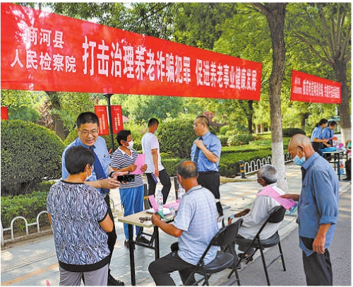 商河县检察院干警深入社区开展打击整治养老诈骗宣传活动。