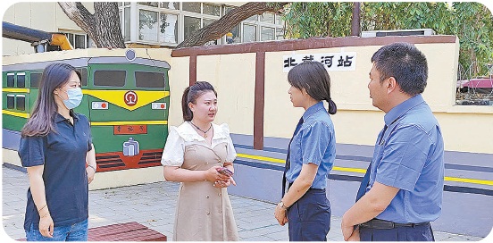李丹丹代表(左二)与秦皇岛市北戴河区检察院检察官商议铁路官房后续保护利用工作。